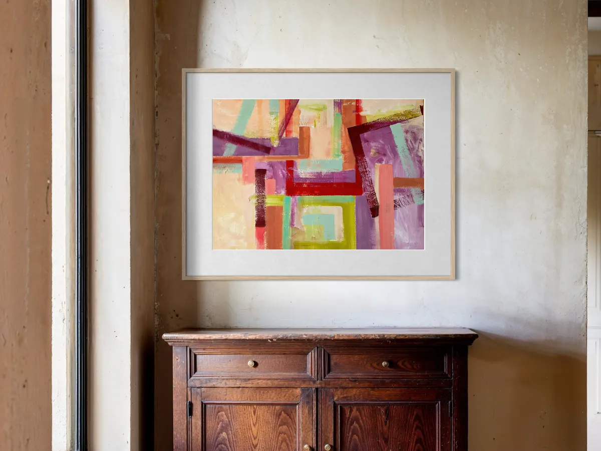 My paintings are primarily an exploration of how color, texture, and composition work together in a shallow space. Simple shapes against a background of loose form and color, and paint that fluctuates between ragged-edged and raw, to hard-edged and refined continue to challenge me.
