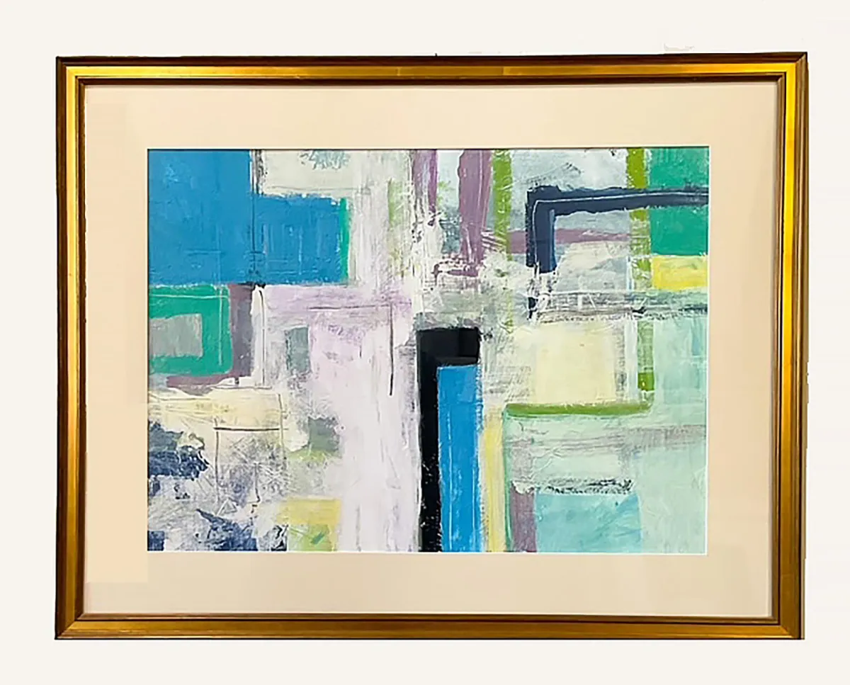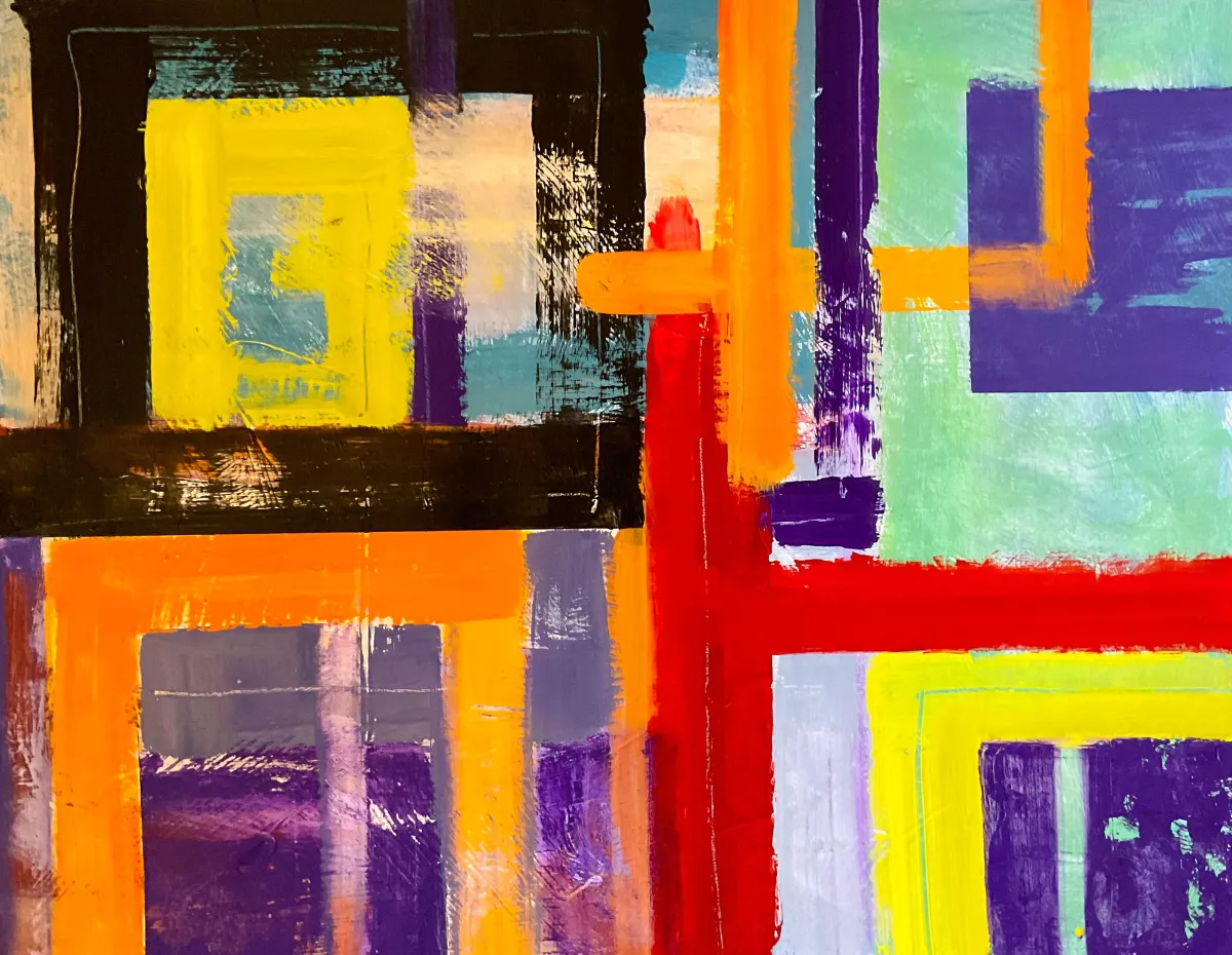 My paintings are primarily an exploration of how color, texture, and composition work together in a shallow space. Simple shapes against a background of loose form and color, and paint that fluctuates between ragged-edged and raw, to hard-edged and refined continue to challenge me.