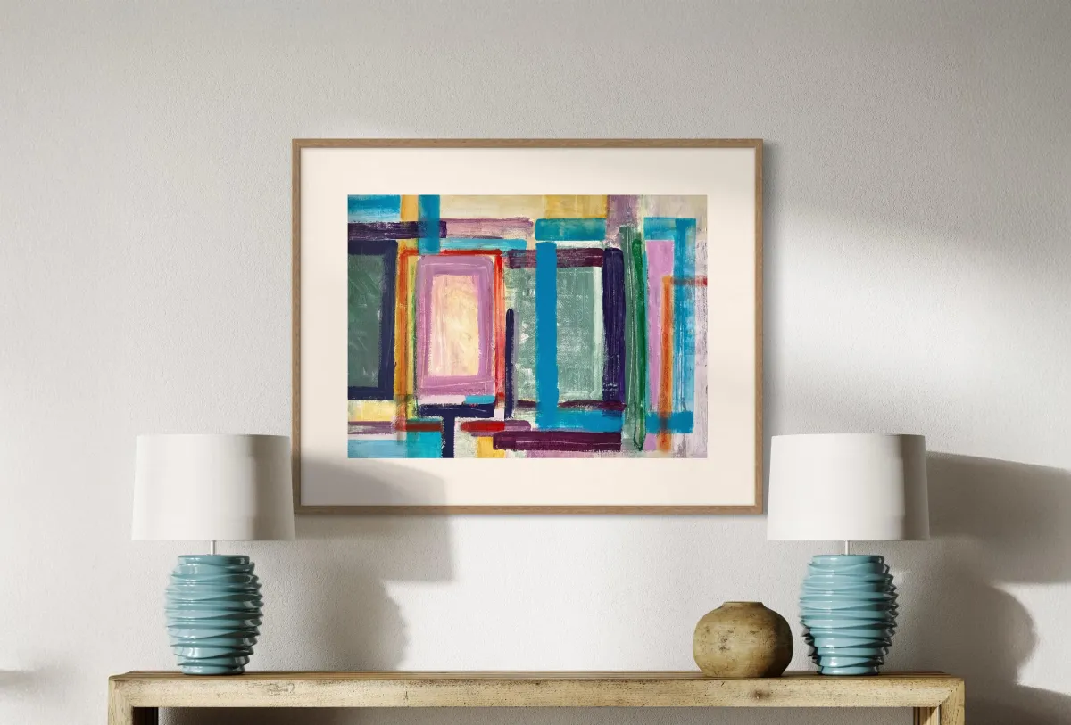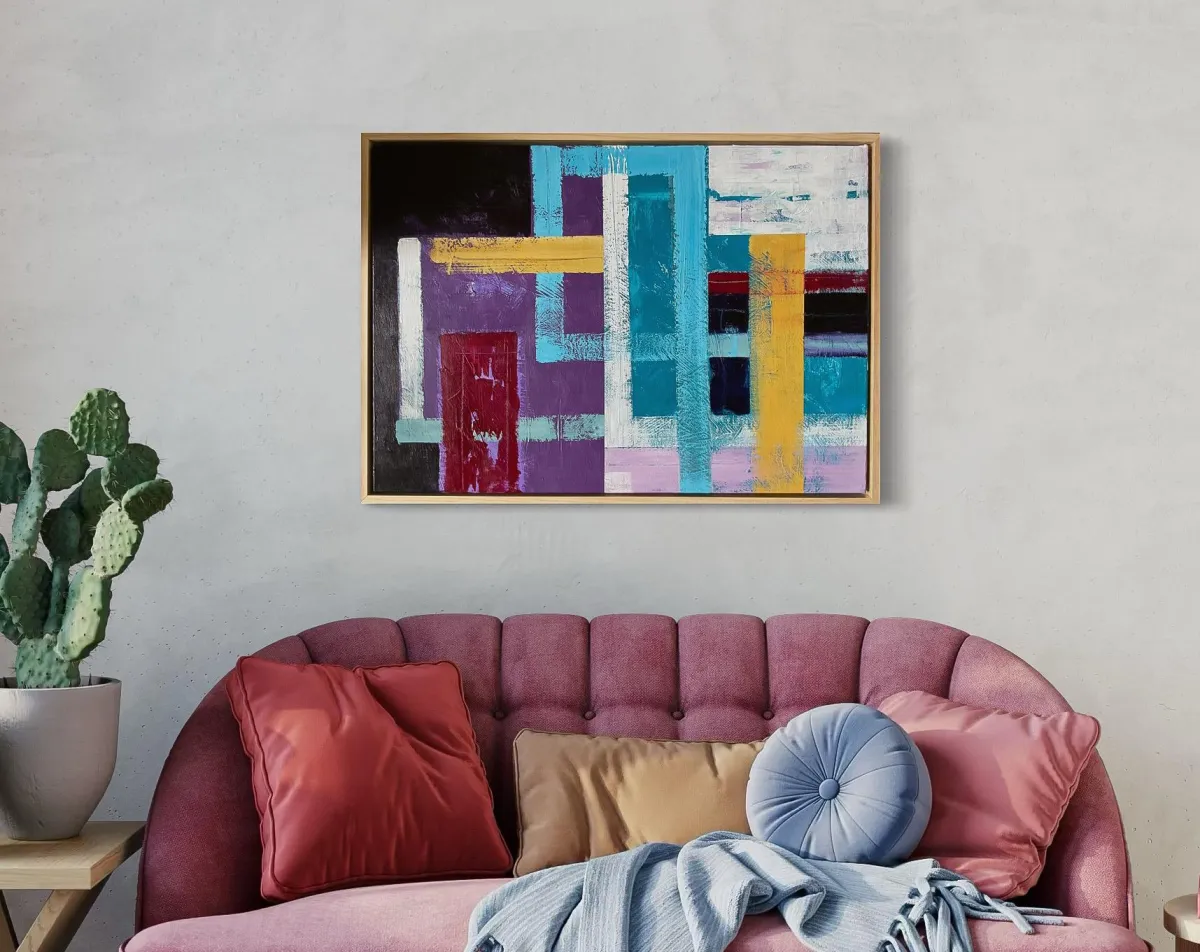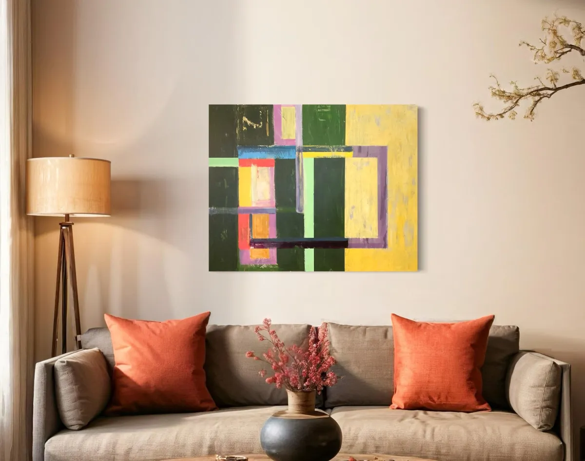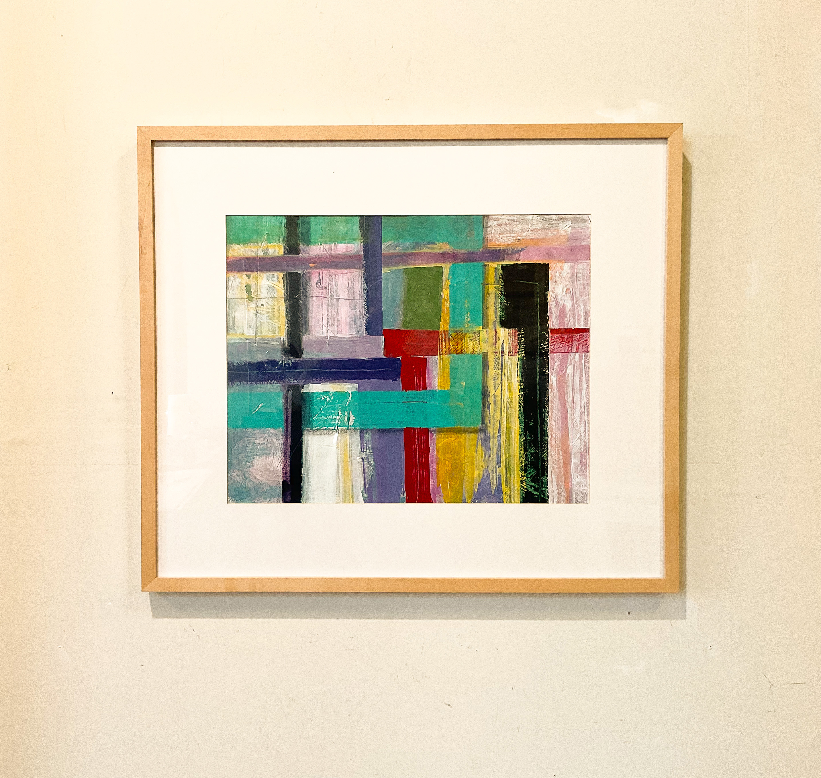 My paintings are primarily an exploration of how color, texture, and composition work together in a shallow space. Simple shapes against a background of loose form and color, and paint that fluctuates between ragged-edged and raw, to hard-edged and refined continue to challenge me.