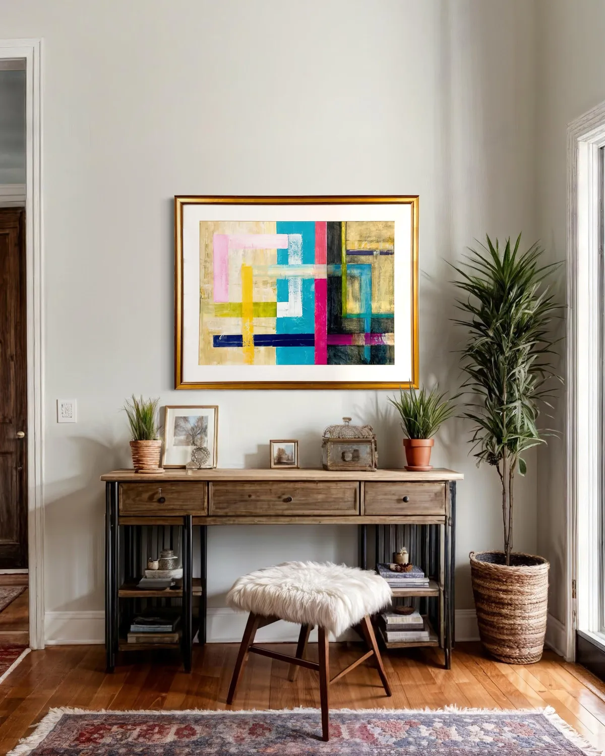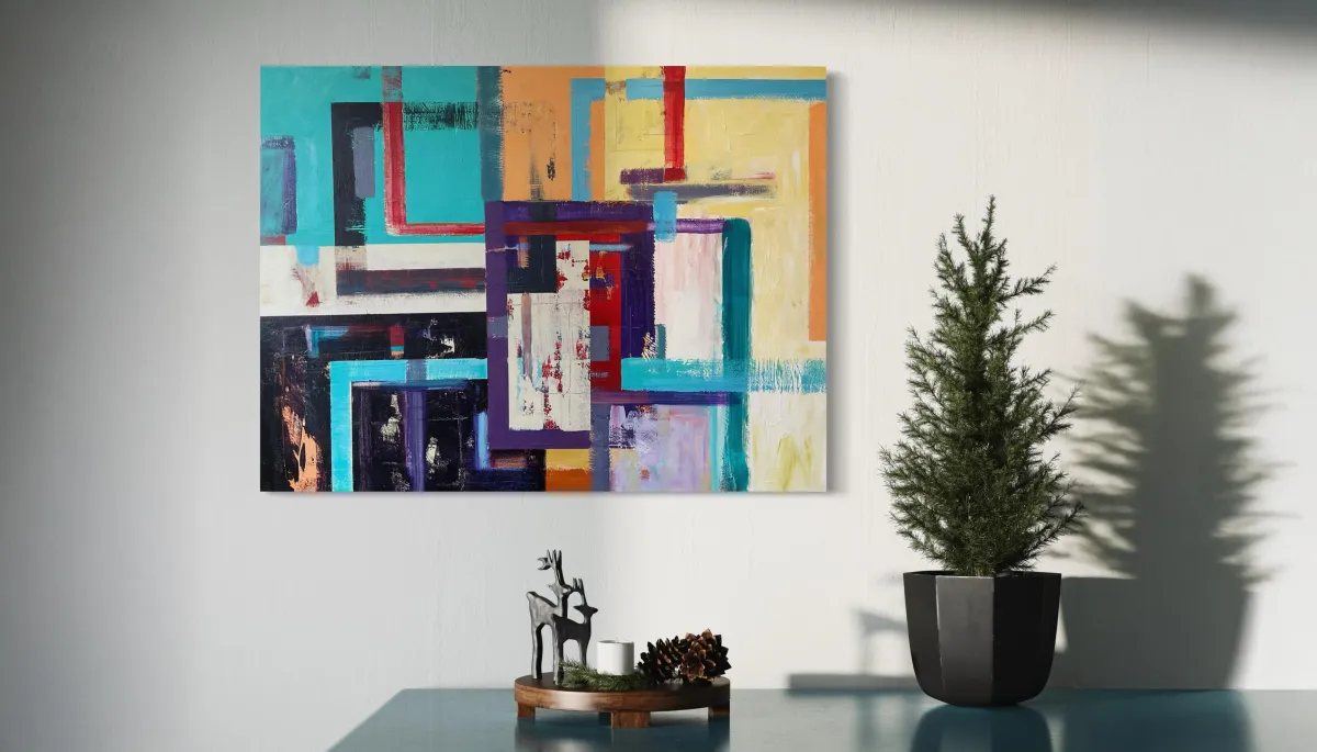 My paintings are primarily an exploration of how color, texture, and composition work together in a shallow space. Simple shapes against a background of loose form and color, and paint that fluctuates between ragged-edged and raw, to hard-edged and refined continue to challenge me.