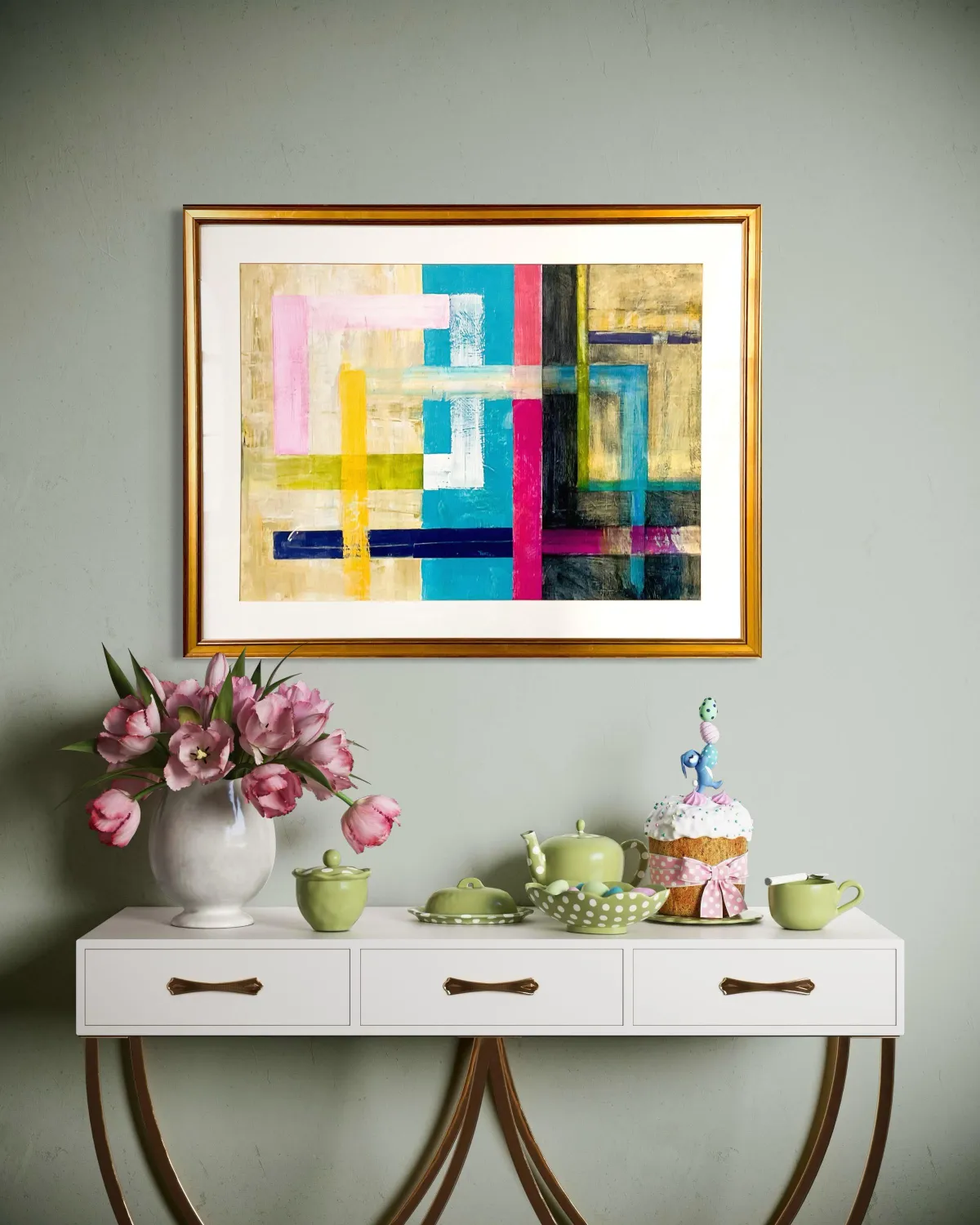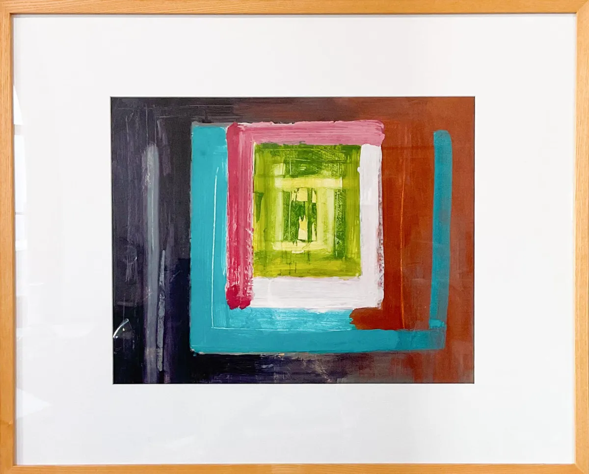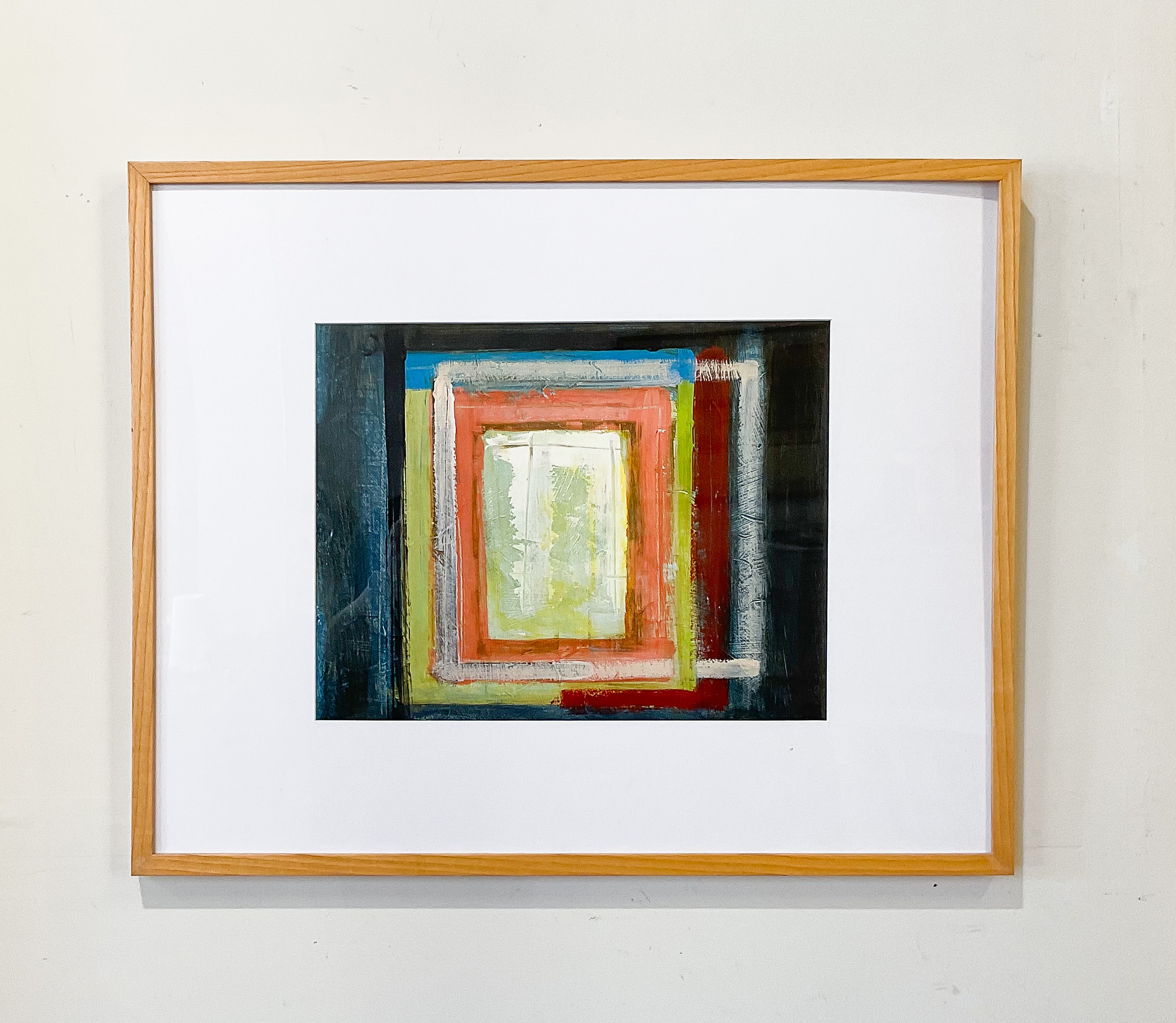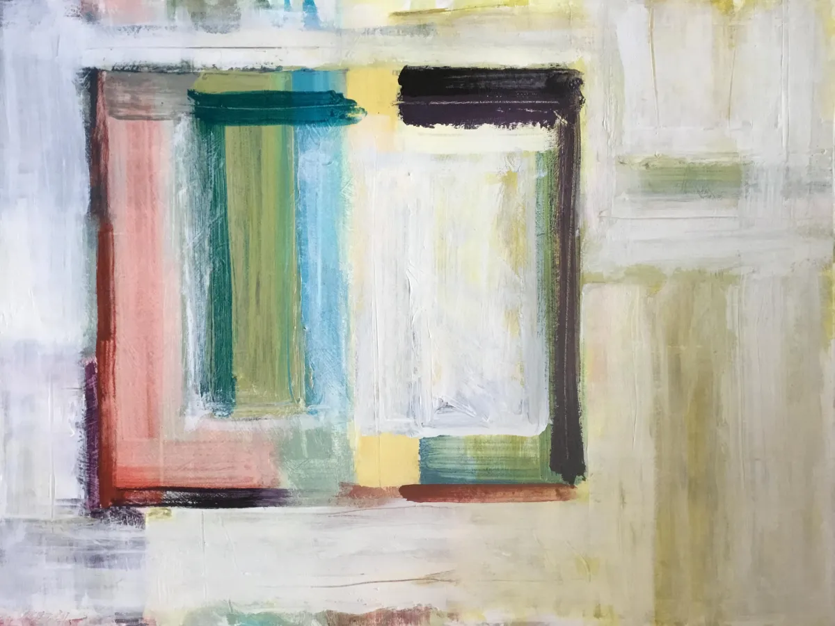 My paintings are primarily an exploration of how color, texture, and composition work together in a shallow space. Simple shapes against a background of loose form and color, and paint that fluctuates between ragged-edged and raw, to hard-edged and refined continue to challenge me.