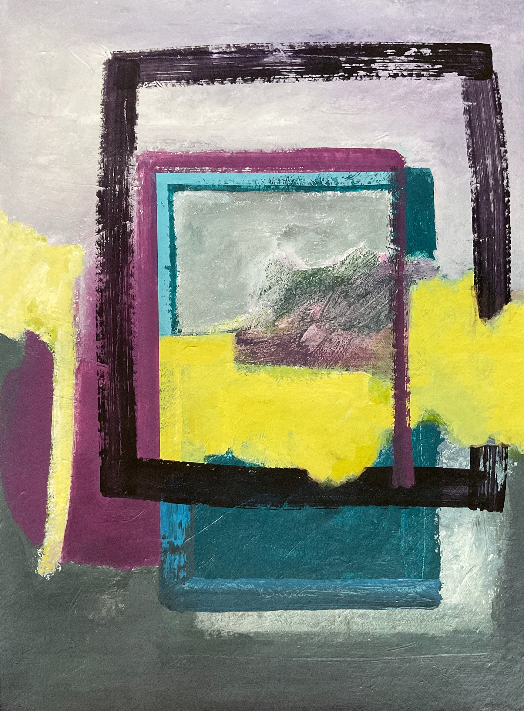 My paintings are primarily an exploration of how color, texture, and composition work together in a shallow space. Simple shapes against a background of loose form and color, and paint that fluctuates between ragged-edged and raw, to hard-edged and refined continue to challenge me.